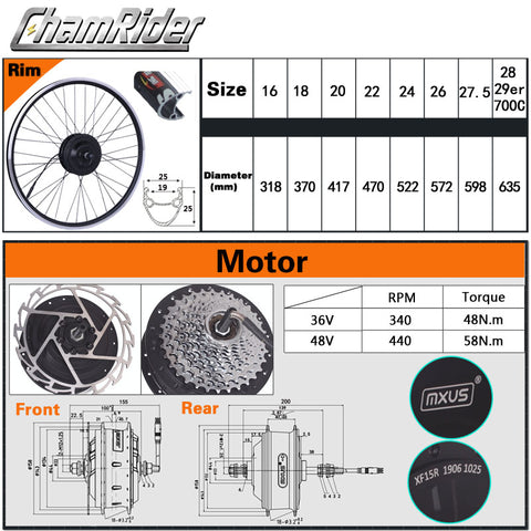 Motor Wheel 500W Electric Bicycle Kit 48V ebike Conversion Kit 36V Ebike Kit MXUS Hub Motor Hailong Battery Waterproof Julet