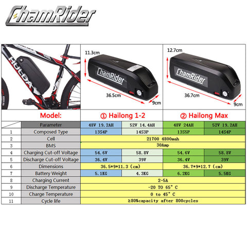 New Arrival Upgrade EBike Battery 21700 48V 52V 36V 28Ah 80Ah 52Ah ChamRider Electric Bicycle Battery Pack 1500W 1000W 500W Motor