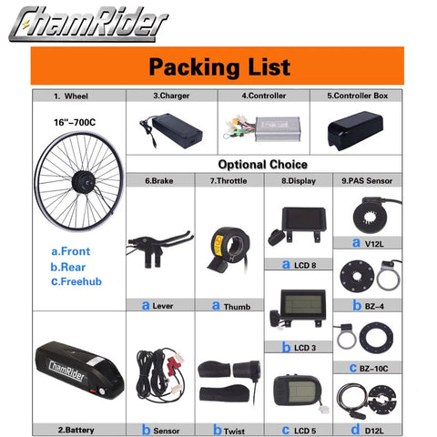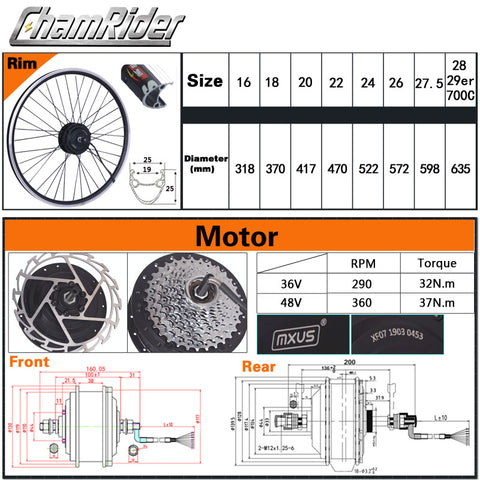 ChamRider Wheel hub Front motor 1000W Electric bike Motor Kit 250W ebike kit 500W ebike conversion kit electric bike kit MXUS